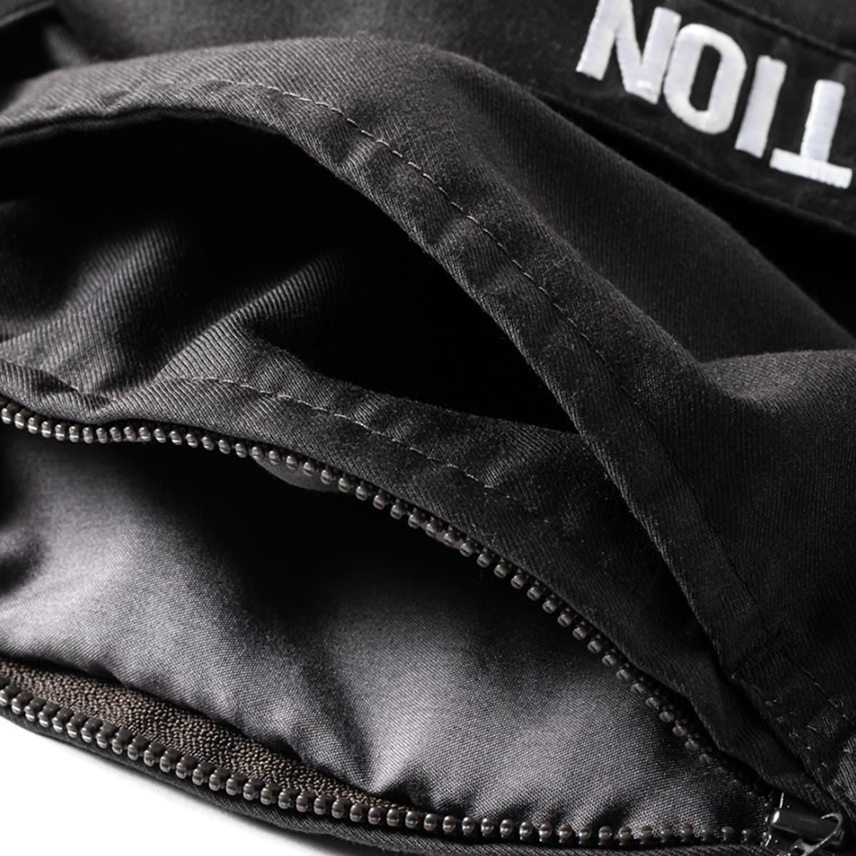 フロントにスラッシュポケット、サイドにはシームに沿ったファスナー付きシームポケット、バックには隠しマグネットボタン仕様のポケットを搭載。