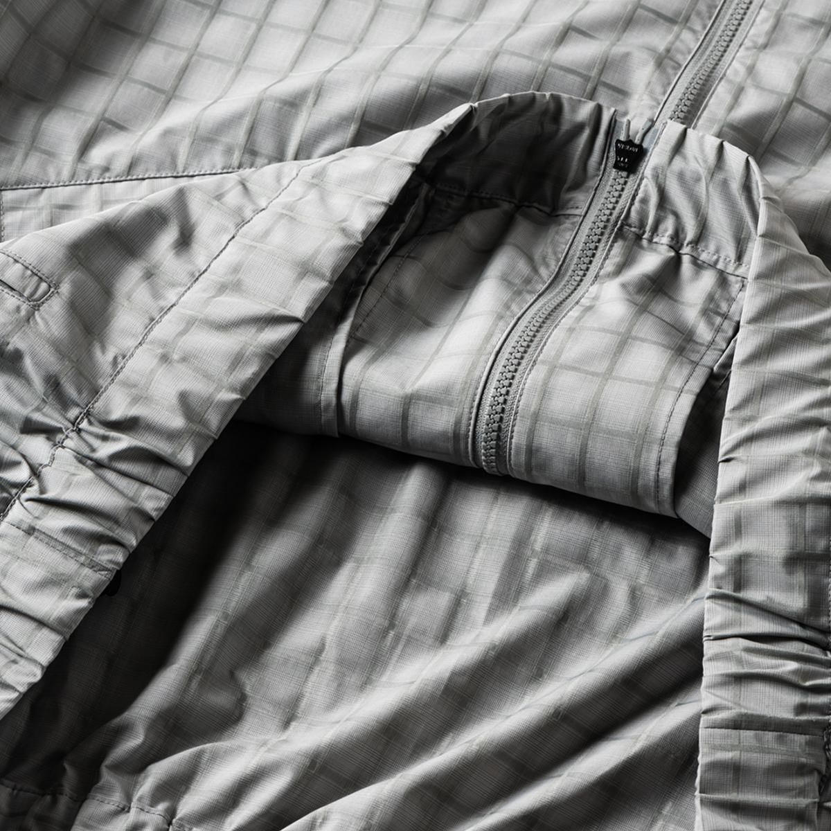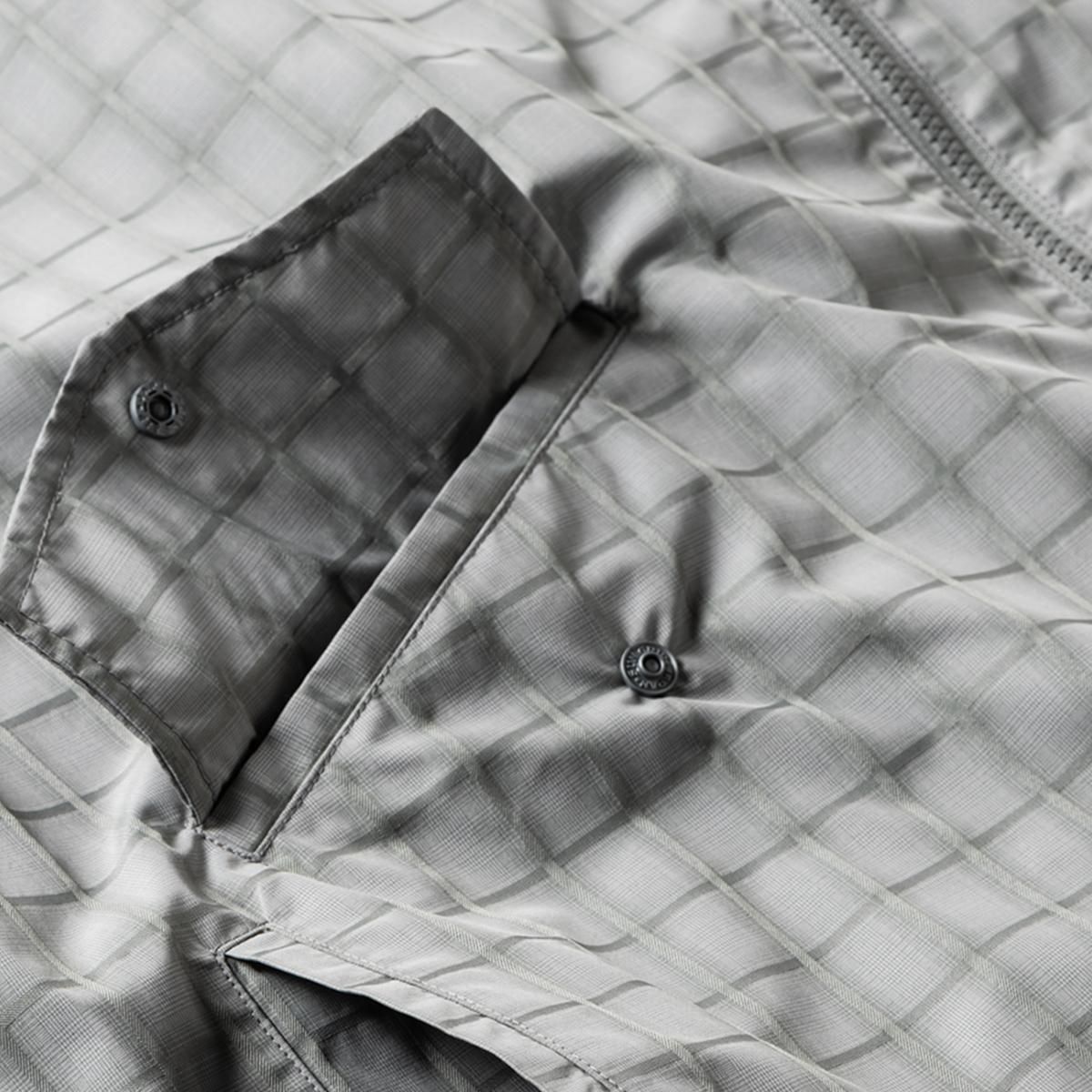 柄に立体感のあるポリエステル生地を使用した1枚モノのライトウェイトジャケット。