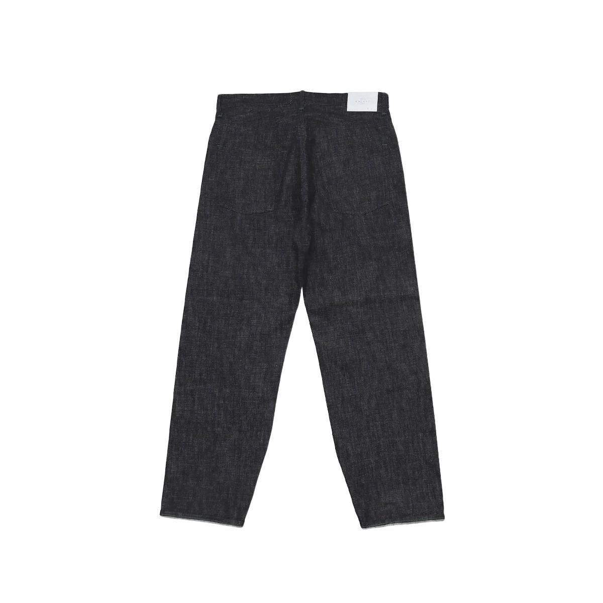 ルーズなシルエットながらおそらくWHIMSYだけであろう縫って絞った裾は、 テーパードでは出せない唯一無二のシルエットとなっている。ほどいてストレートシルエットで履くことも可能。