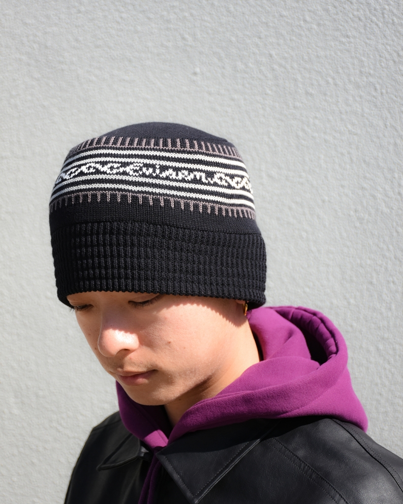 カジュアルな雰囲気のコットン糸で編み上げたオリジナルデザインのニットハット。