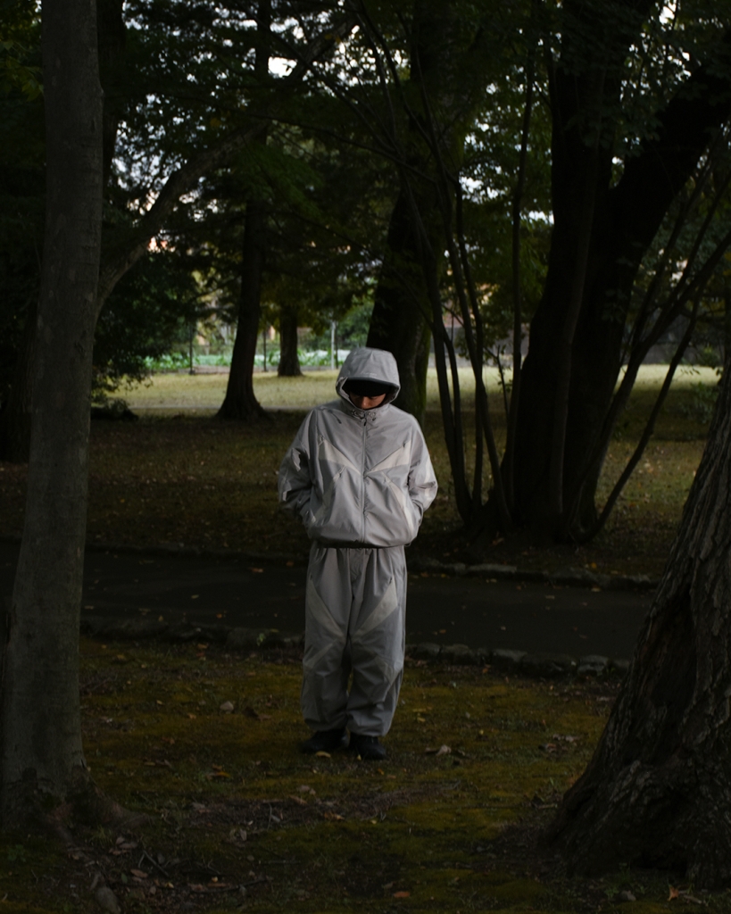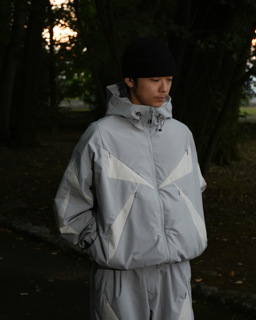 同素材のTRIANGLE BALLOON PANTSとのセットアップスタイルも可能。