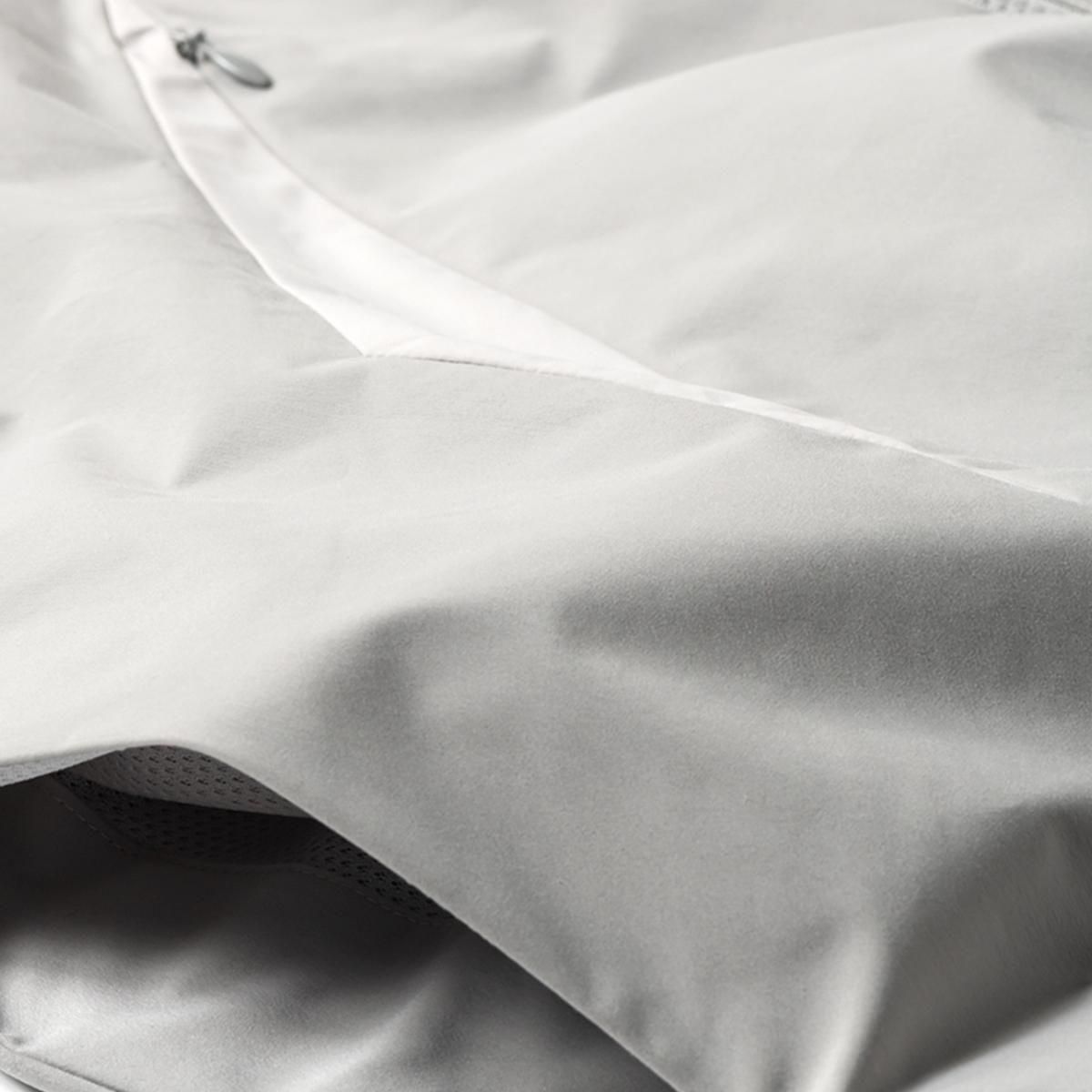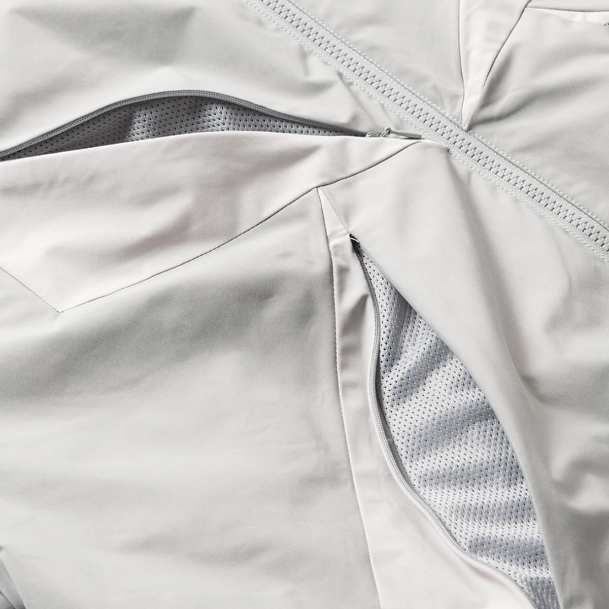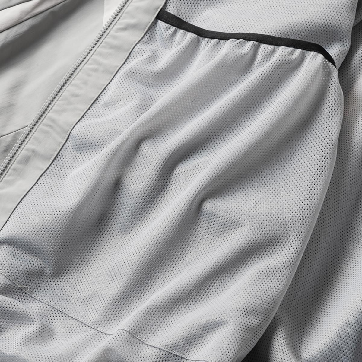 高密度で柔らかく、マット感のある超微起毛ポリエステルウェザー生地を表地に採用し、裏地はメッシュ素材でさらりとした着心地。
