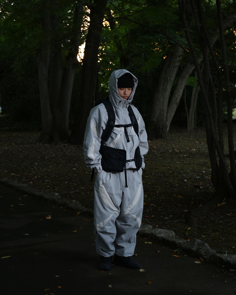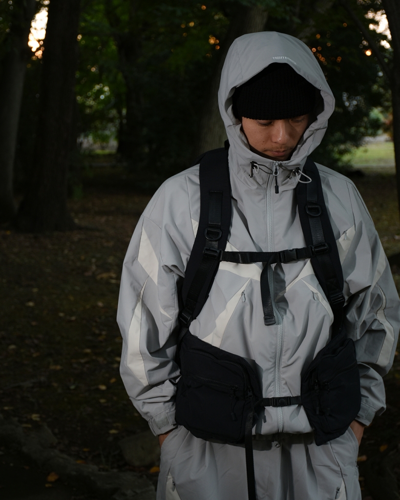 腰ポケットパーツに付いたバックルを留めれば、ユーティリティベストのように“着用”可能。