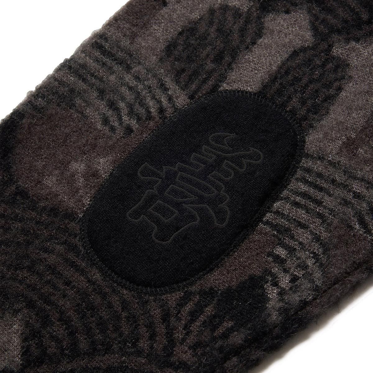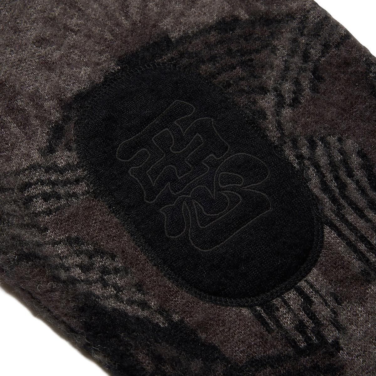 リブ編みのエルボーパッチには、「善」と「悪」の刺繍入り。