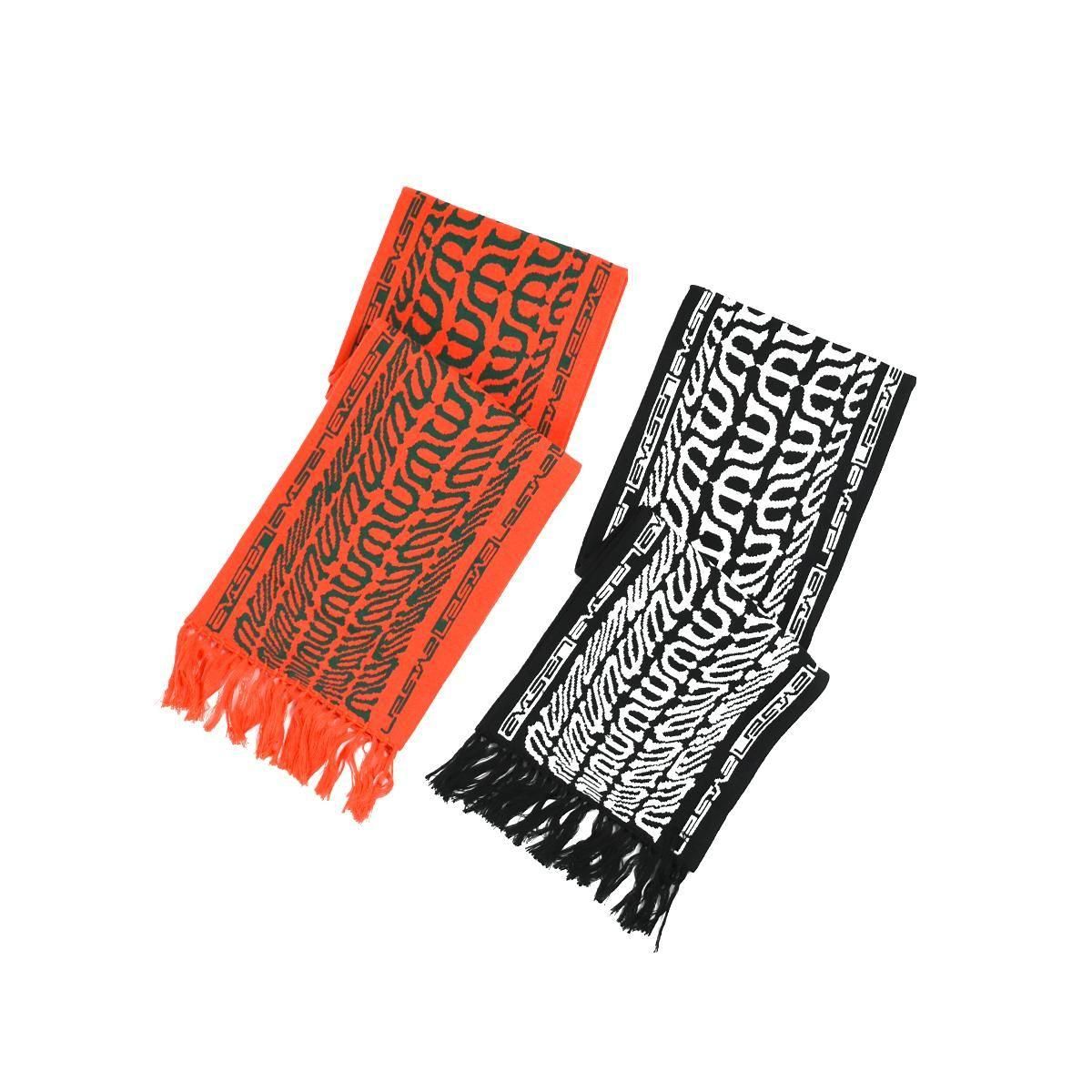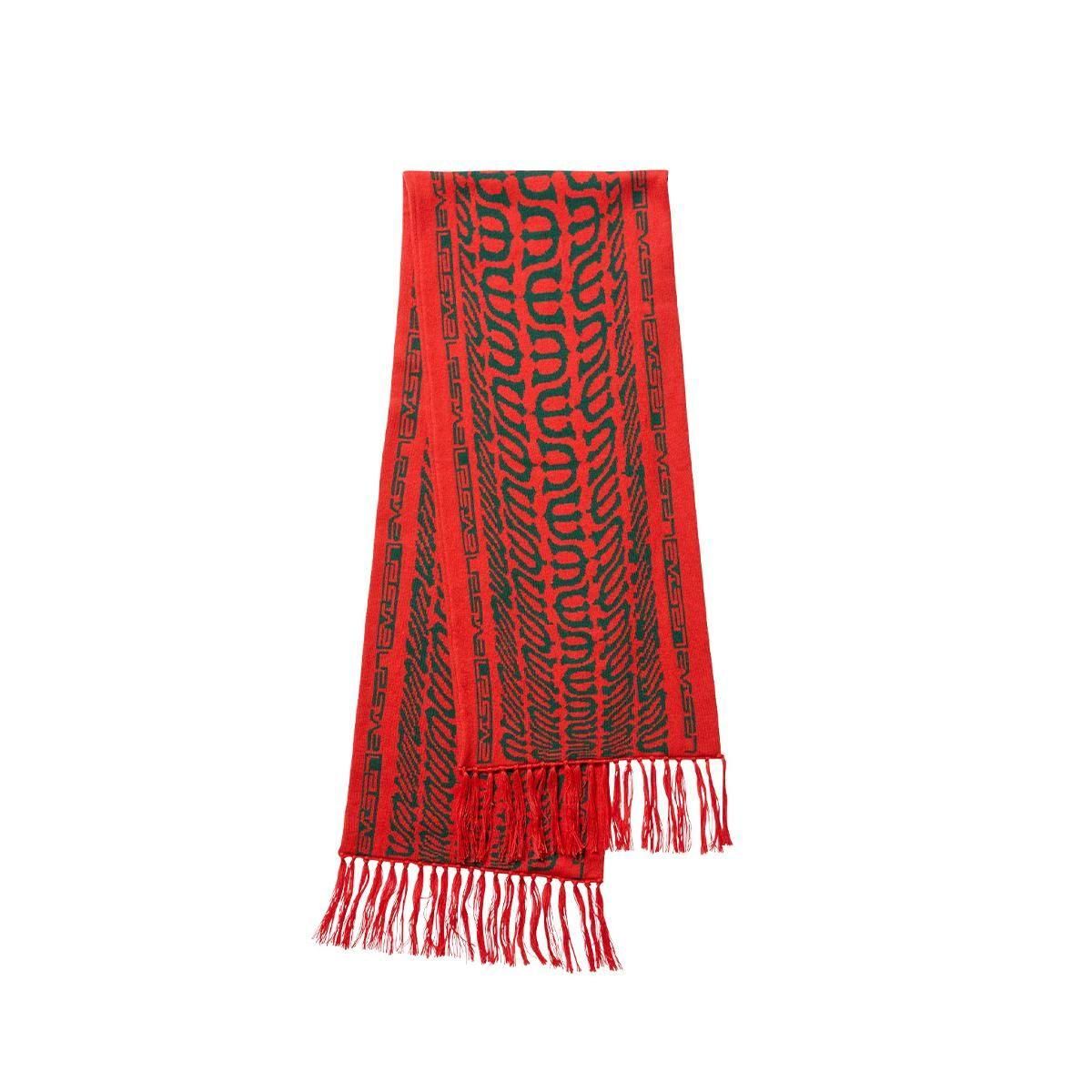 ジャカード編みでEロゴをたくさん描いたマフラー。