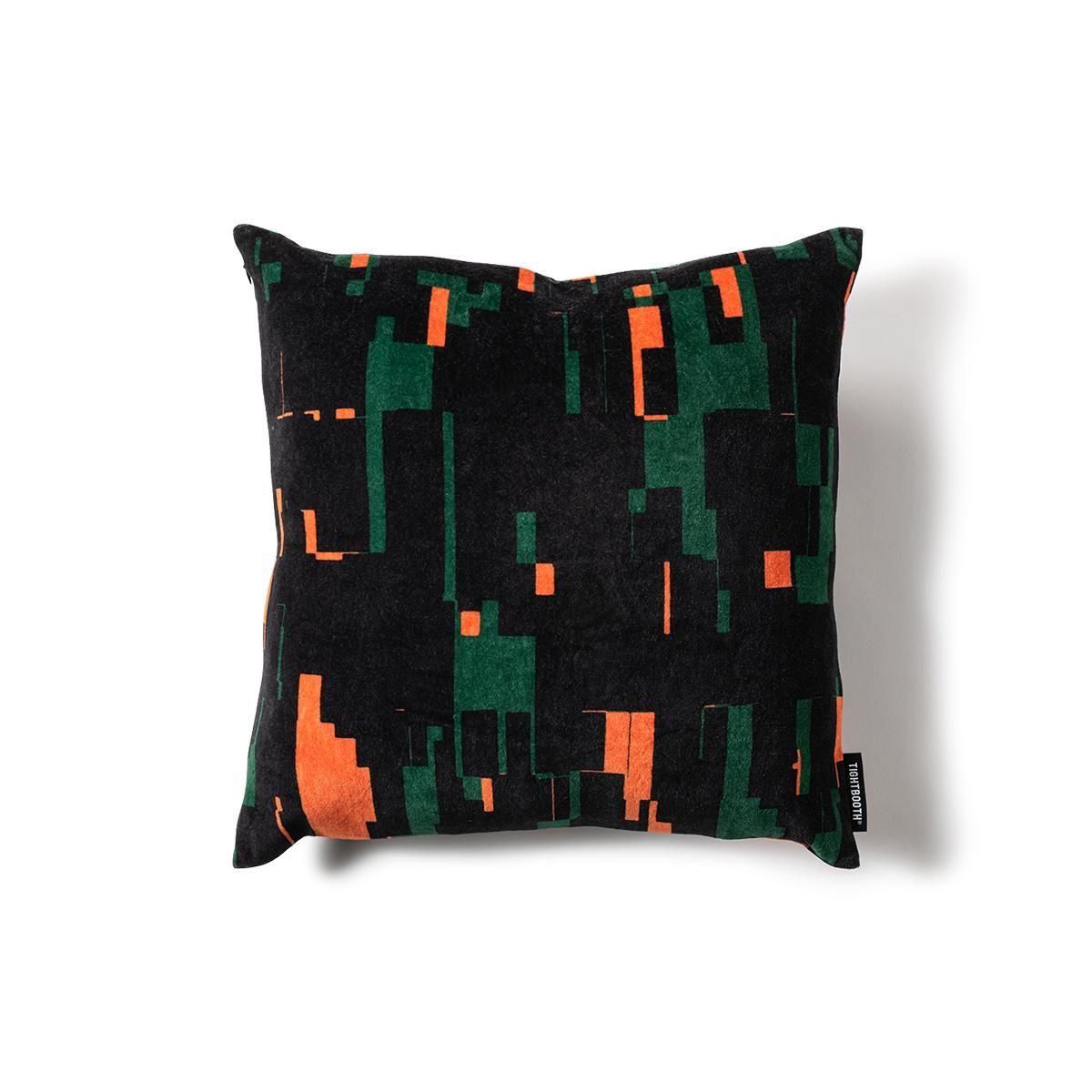 定番のベロア生地に総柄プリントしたスクエアクッション。