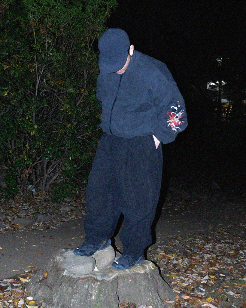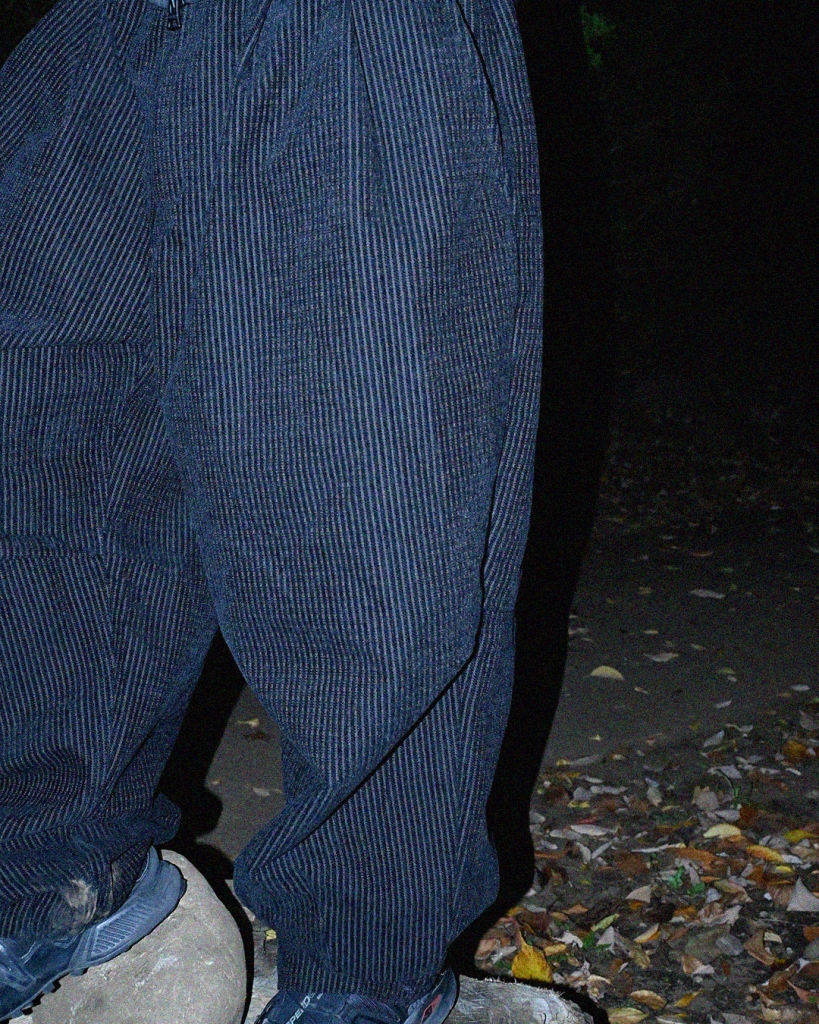 色違いの糸が折り込まれ、ドットのように見える太畝コーデュロイ生地を使用したバルーンパンツ。