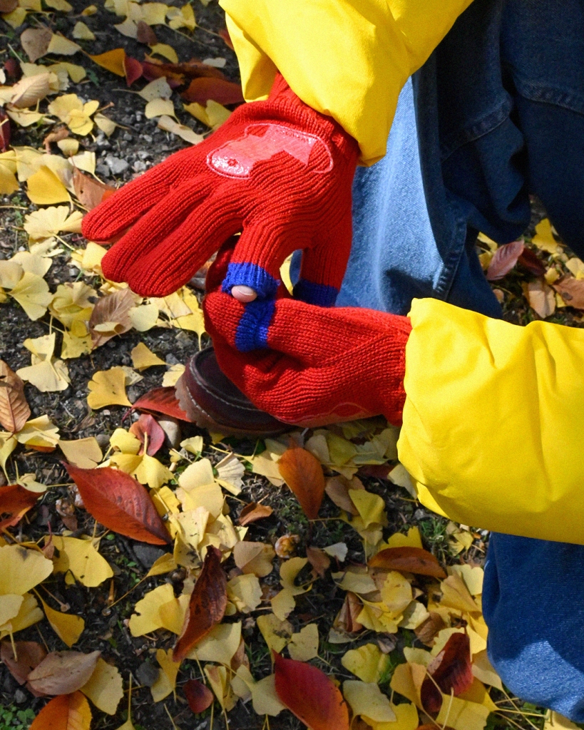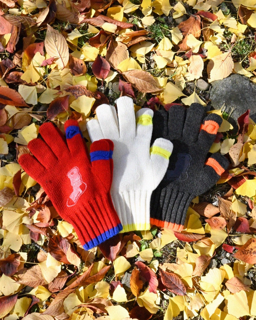 Whimsyから始めてリリースされる手袋は、ウール100%の糸で製作され古き良き風合いを醸し出す。切り返しにより人差し指と親指が着用したまま出せるのでスマホも操作可能。