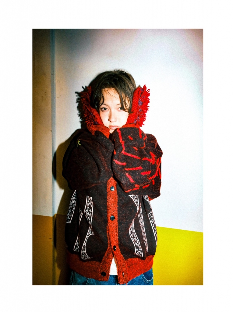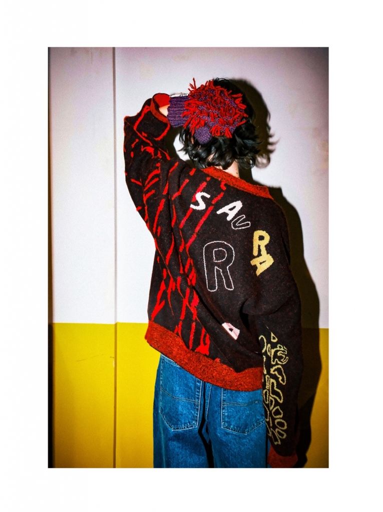 前身、後身、右袖、左袖でパーツ全て異なる柄を編み効率ではなくデザインを最優先した編立。