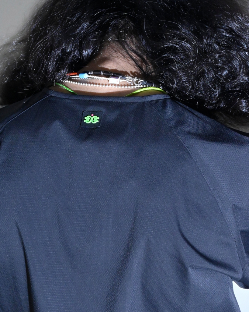 胸と両脇サイドにポケットあり。